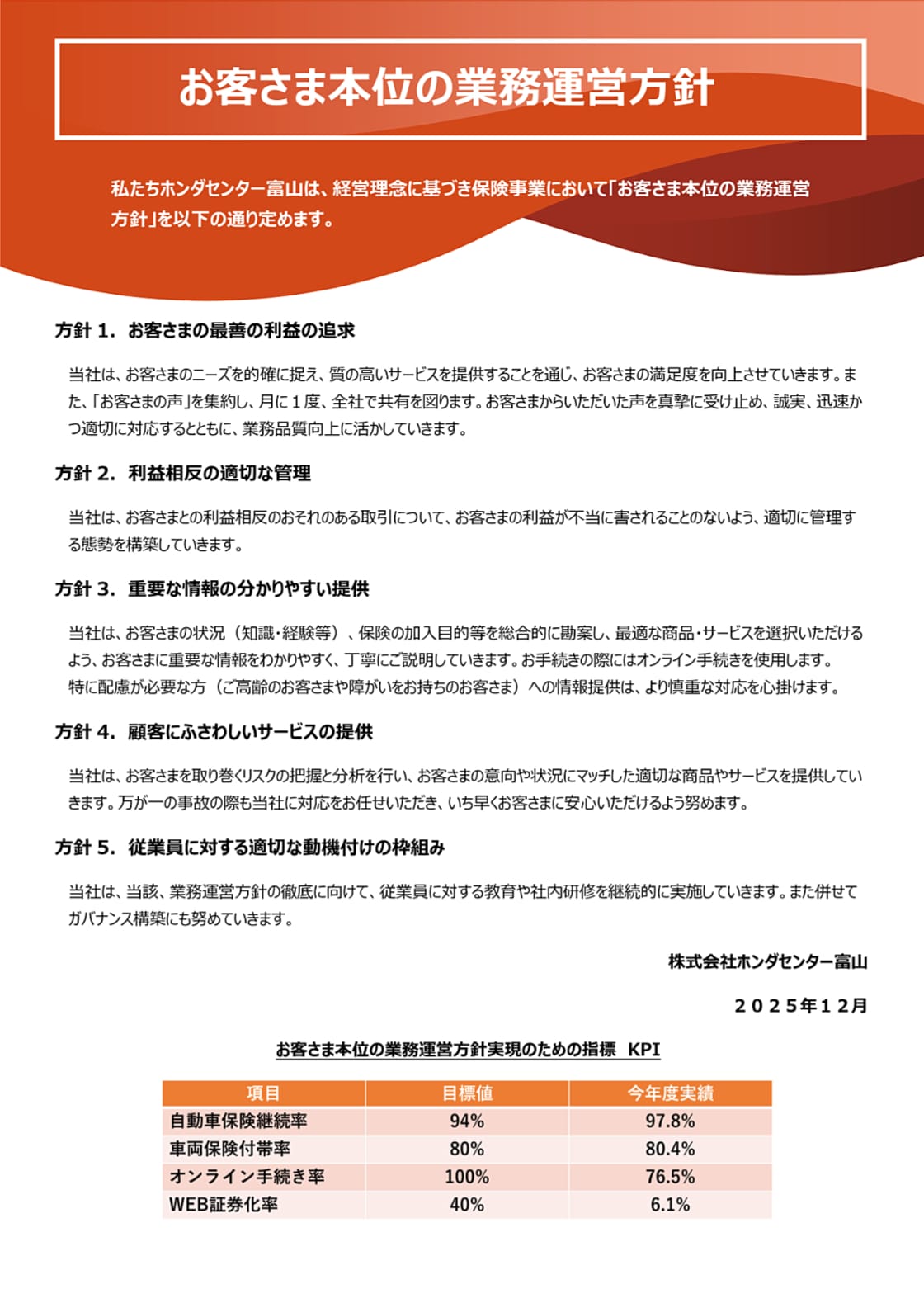 Hondaの販売チャンネルの一本化により、屋号を「Honda Cars 富山中央」と改める |